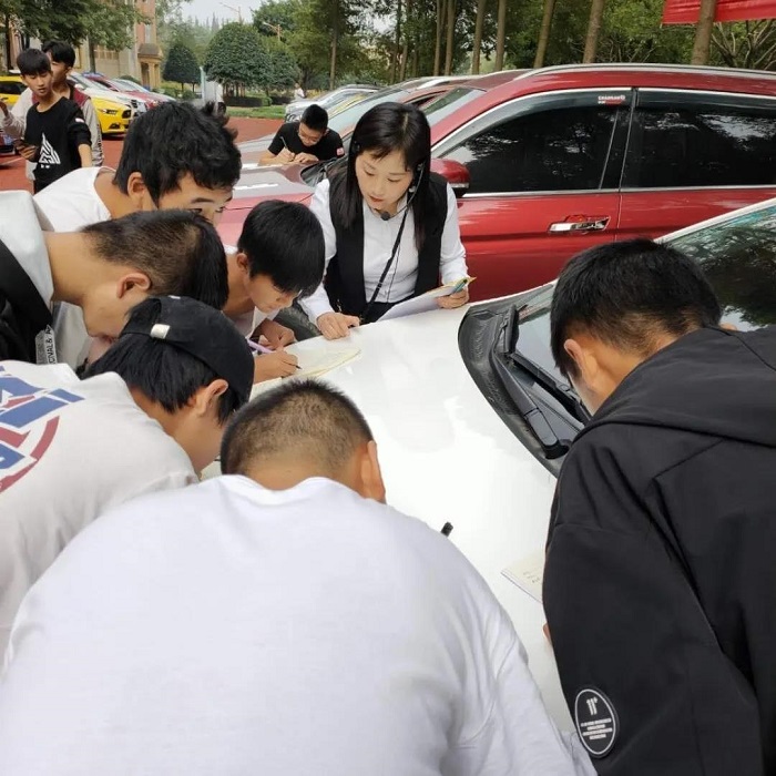 凌老師首先給每位同學(xué)貼上小組標(biāo)簽,整隊(duì)分組提要求。然后在規(guī)定時(shí)間和地點(diǎn)內(nèi),按小組來收集有效資料,再是由組長(zhǎng)檢查、歸納、整合各自收集的資料。最后組長(zhǎng)帶領(lǐng)組員做完善的報(bào)告演說,完成課堂任務(wù),由凌老師評(píng)分、總結(jié)。這就是凌老師一堂完美的汽車專業(yè)課堂!? ?