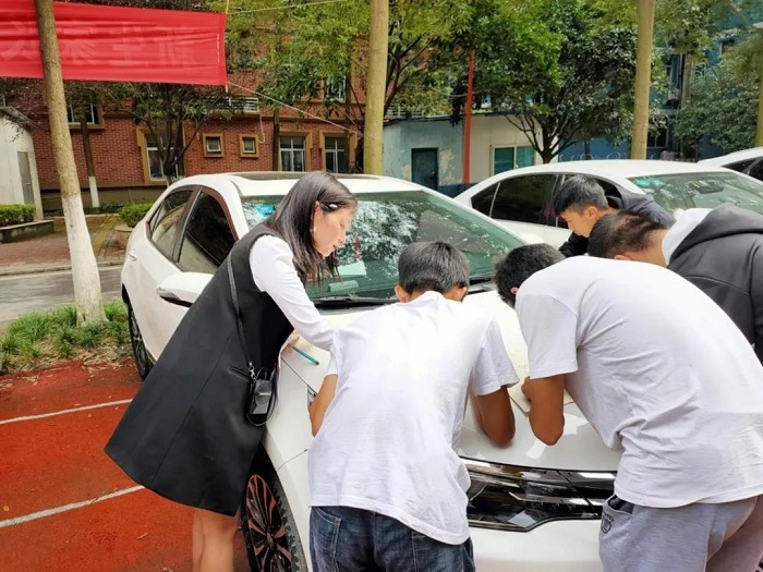 為了讓學(xué)生們?cè)趯?shí)踐中了解汽修的方式方法,凌書娟老師讓學(xué)生們從教室走進(jìn)學(xué)校的停車場(chǎng),讓他們實(shí)際觀察不同車輛的差異,真正把課堂中學(xué)到的理論知識(shí)與實(shí)踐相結(jié)合。
