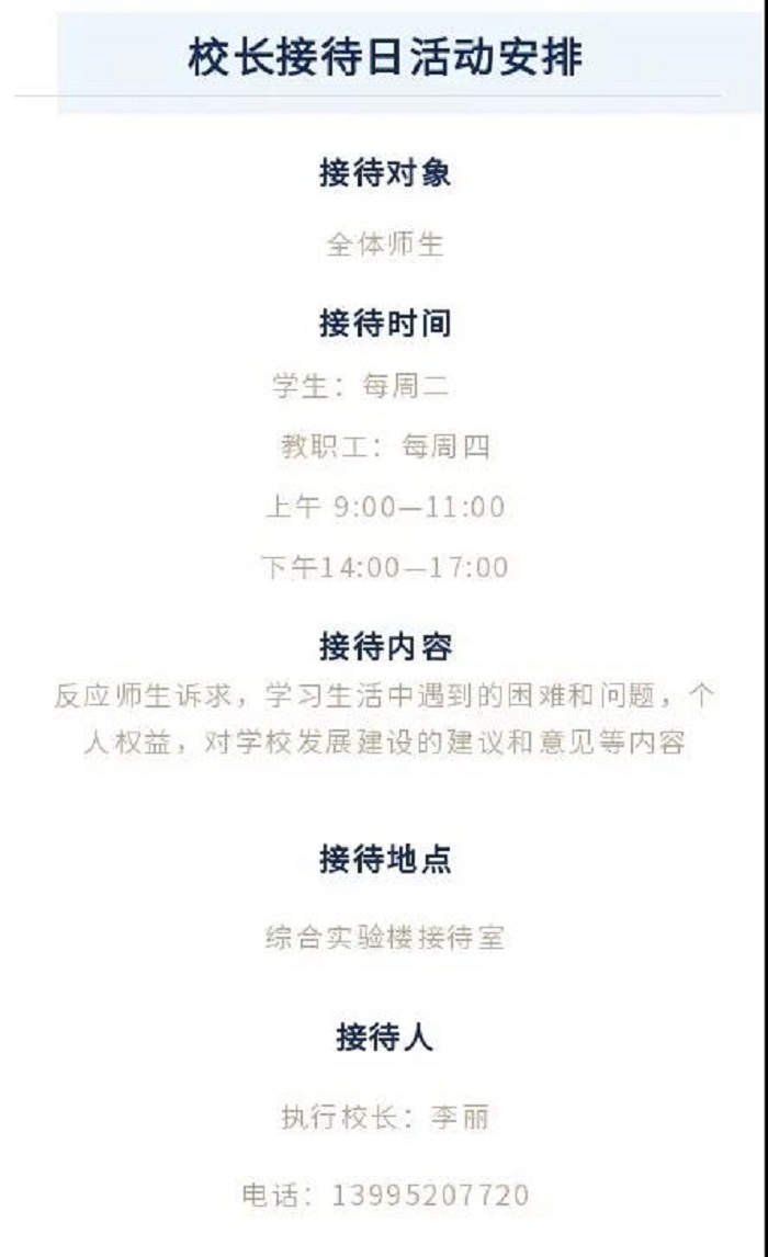 除了接待日現(xiàn)場接待以外,院校長們還24小時接受老師們和同學(xué)們的 短信 消息,竭盡全力解決大家的后顧之憂。