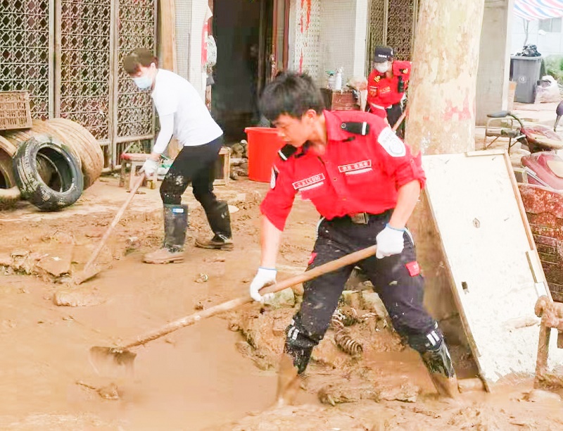 7月29日,烈日灼灼。河南暴雨災(zāi)區(qū)鞏義市東部路網(wǎng)建設(shè)指揮部附近,剛從新鄉(xiāng)救援現(xiàn)場轉(zhuǎn)戰(zhàn)到鞏義的救援志愿者正在進(jìn)行災(zāi)后消殺工作。一個(gè)略顯年輕的正是四川五月花技師學(xué)院的優(yōu)秀畢業(yè)生徐高攀。這是徐高攀和隊(duì)友們從.