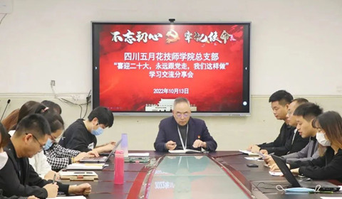 10月13日,四川五月花技師學院總支部2022年第五次中心組(擴大)學習會議在1—117會議室召開,組織開展“喜迎二十大,永遠跟黨走,我們這樣做”學習交流活動,學院全體黨員、入黨積極分子、處級及以上干.